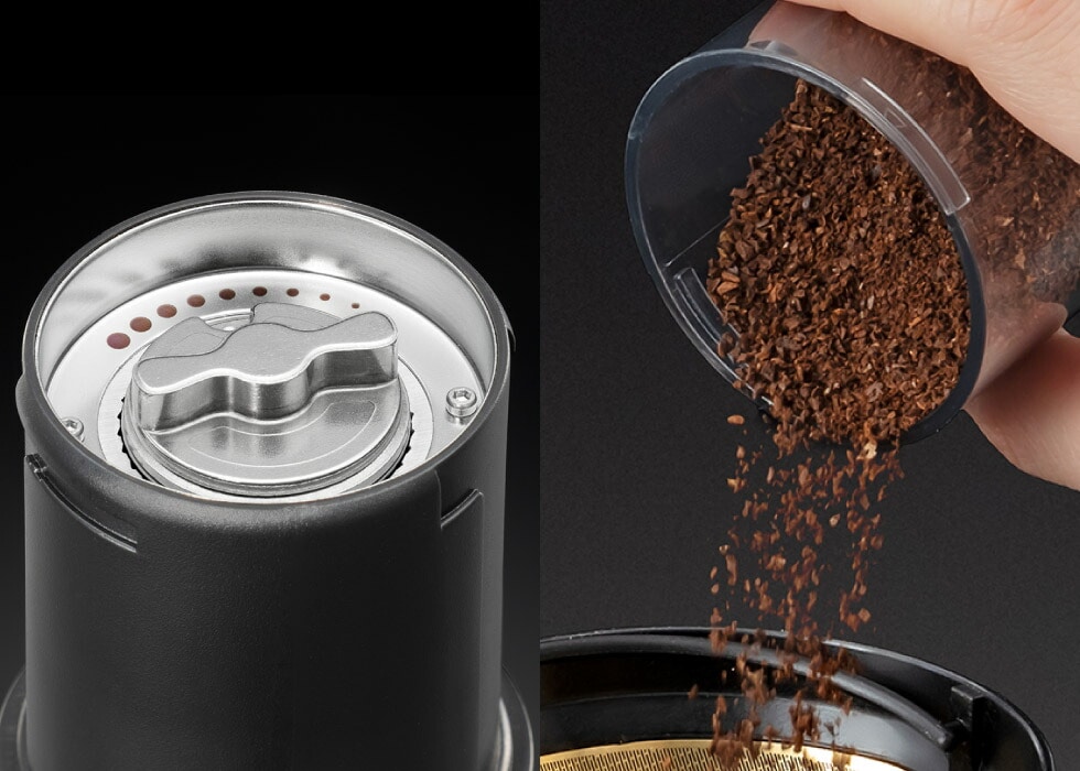 カバーを外した底面のダイヤルを回すだけで、フレンチプレス用の粗挽きからエスプレッソ用の極細挽きまで簡単に調整可能です。用途や豆の種類に合わせて自由にカスタマイズでき、同じ豆でも挽き目を変えることで味わいの変化を楽しめます。