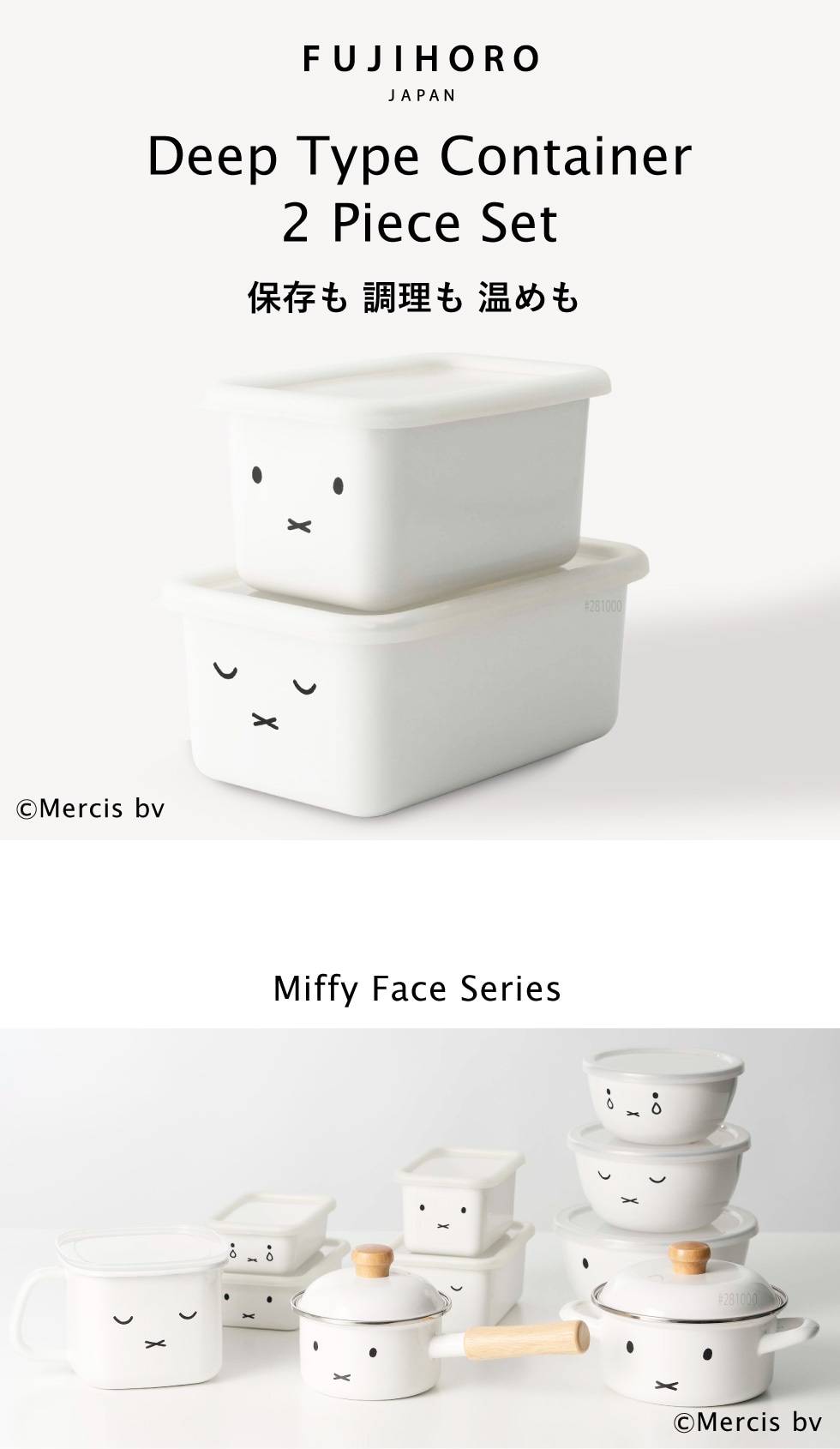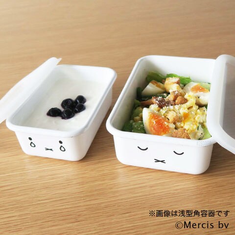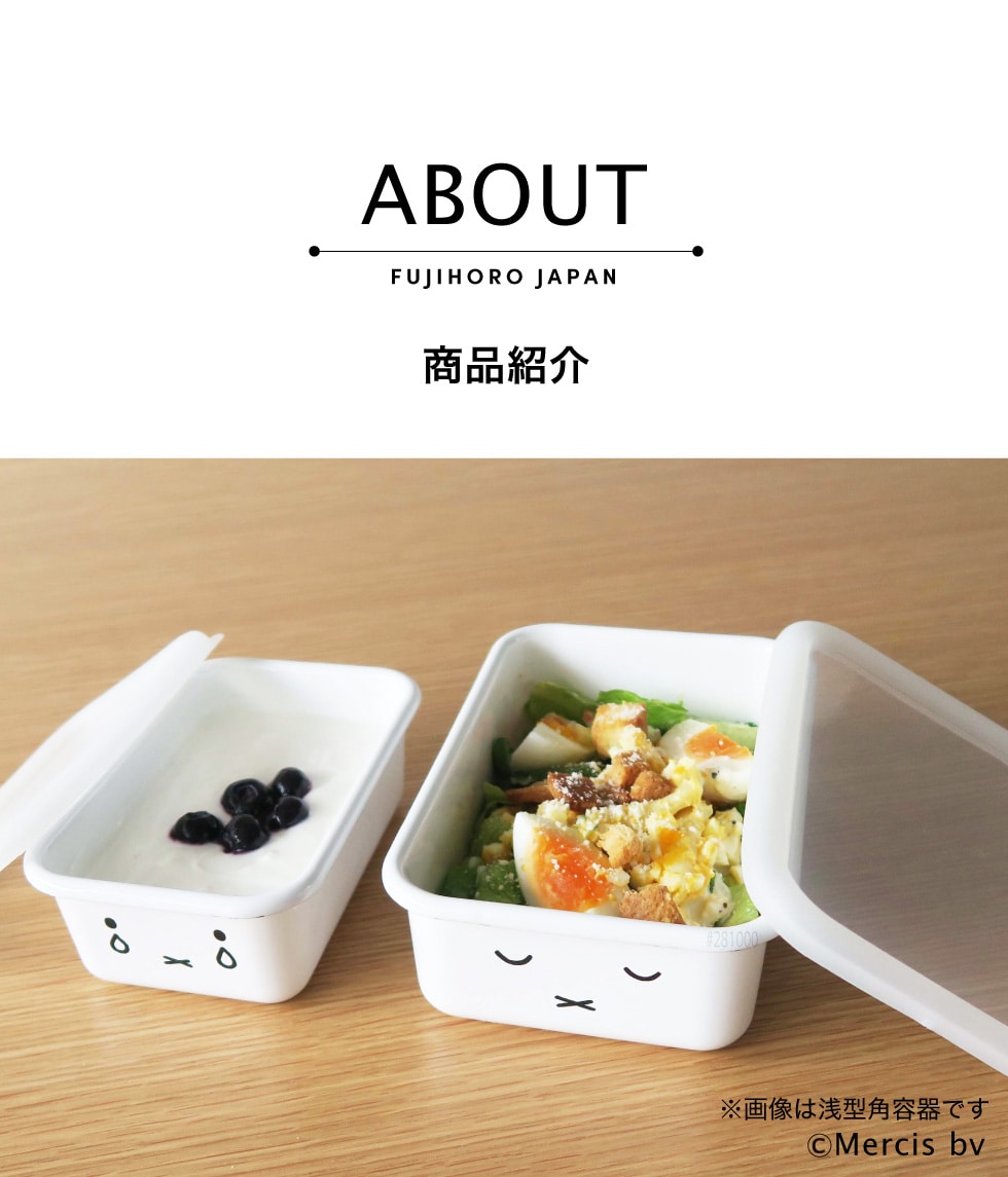 富士ホーロー ミッフィー 深型角容器 2点セット MFF-2DSM / 2個セット miffy ミッフィーフェイス 保存容器 耐熱 密閉 角形 フードストッカー ホーロー ホーロー容器 琺瑯 かわいい シンプル FUJIHORO