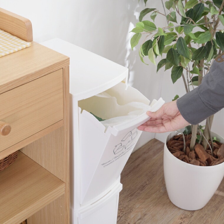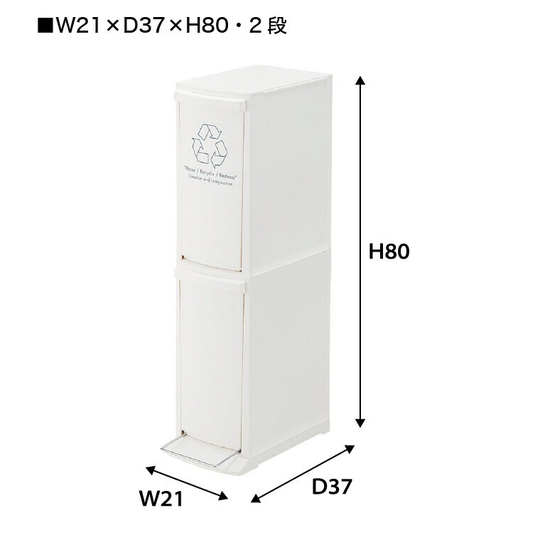 幅21cmのスリムタイプのゴミ箱で、場所を取りません。スリムでも容量は20Lも入り、ちょっとした狭い空きスペースにも設置可能です。省スペースで上段と下段でゴミを分別できます。お部屋に馴染みやすい、シンプルで清潔感のあるデザインです。
