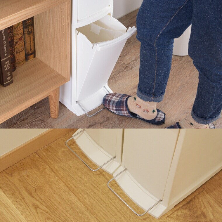 下の段はフットペダルで開け閉めできます。両手が塞がっていたり手が濡れた状態でも、ゴミを捨てることができます。