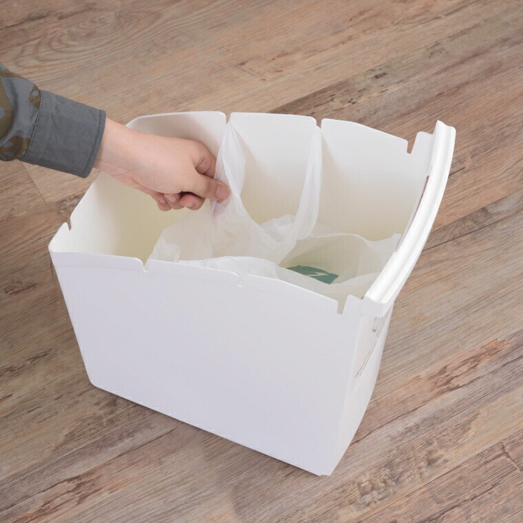 取り外し可能で、ゴミ袋が動かないようストッパーでしっかり固定できます。複数の溝があるので複数の袋をかけて、中で細かく分別することも可能です。