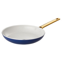 内面のサーモロン・セラミックコーティングにはダイヤモンド粒子を配合しているので、セラミックとダイヤモンド粒子の相乗効果により熱伝導が良く、調理が早く仕上るので美味しく仕上ります。内面・外面のクリームホワイトとゴールドのハンドルの色味がかわいらしいデザインです。