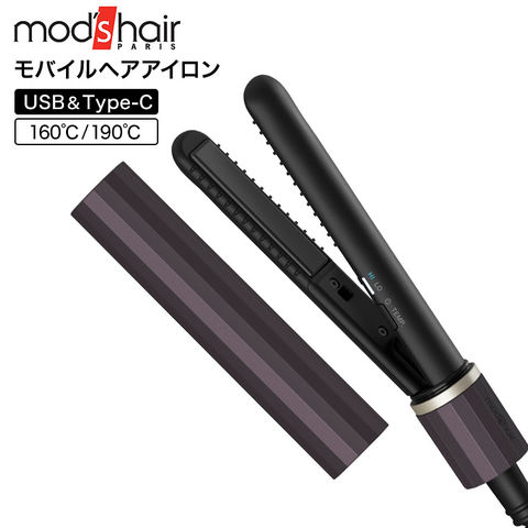 送料無料 モッズヘア モバイルヘアアイロン MHS-1343 / 海外兼用 100-240v 軽量 コンパクト 持ち運び 携帯 USB給電 電源プラグ モバイルバッテリー オートオフ 外出 旅行 出張 海外旅行 ミニサイズ 前髪 外ハネ 贈答品 gws / パープルブラック