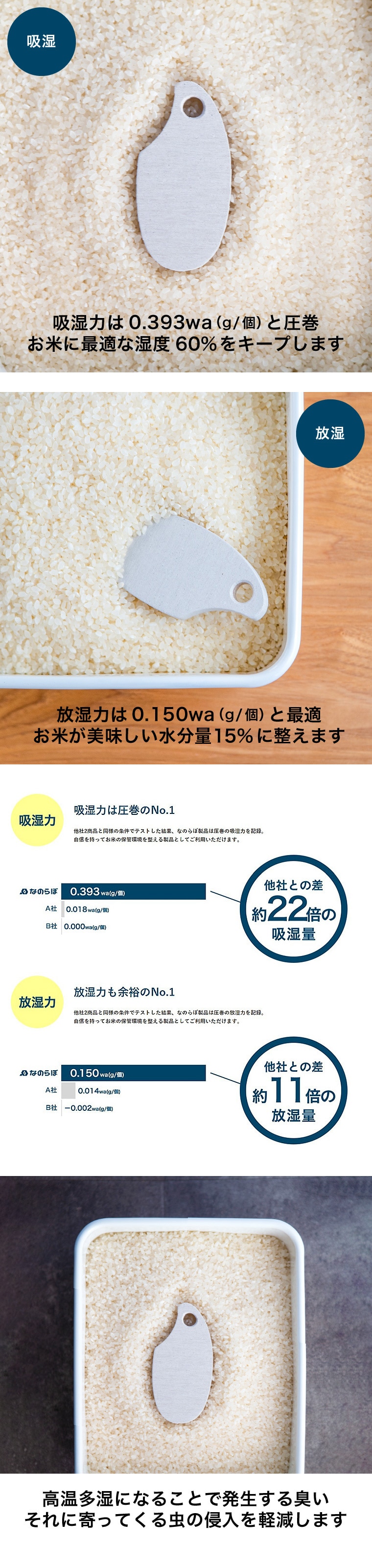 なのらぼ お米の守り神 / 珪藻土 調湿剤 脱臭剤 虫除け 虫よけ 防虫 米びつ用 湿度調節 吸湿 放湿 白米 玄米 保管