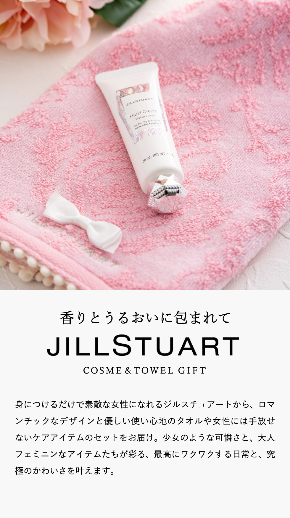 タオル ジルスチュアート ハンドクリーム 30g・ウォッシュタオルセット J-49 / セット ブランド コスメ セット 結婚祝い 女性 内祝い お返し 写真入り メッセージカードプレゼント お返し
