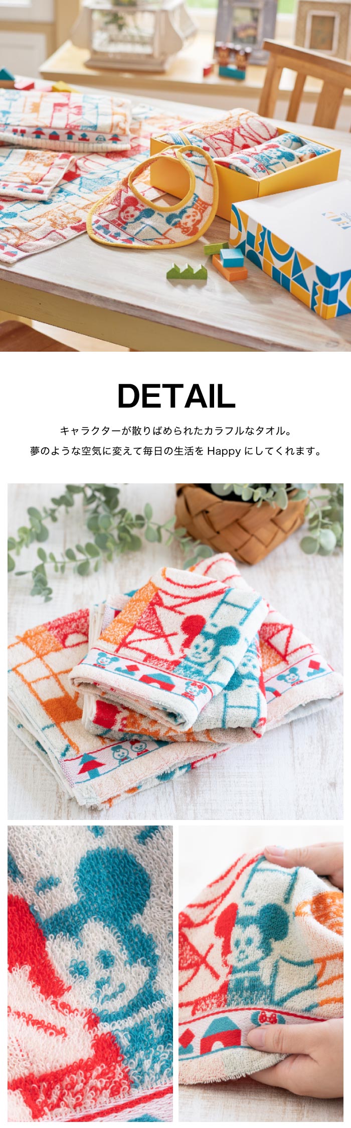 ●サイズ:【フェイスタオル】34×66cm、【スタイ】22×27cm