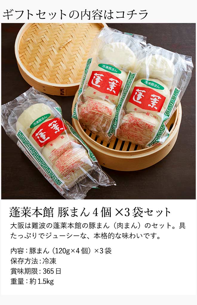 (送料無料)大阪 難波 蓬莱本館 豚まんセット(4個×3袋)(メーカー直送)(のし・包装紙・メッセージカード不可)(冷凍便) 内祝い 結婚内祝い 出産内祝い お返し プレゼント 食品 お取り寄せグルメ 高級