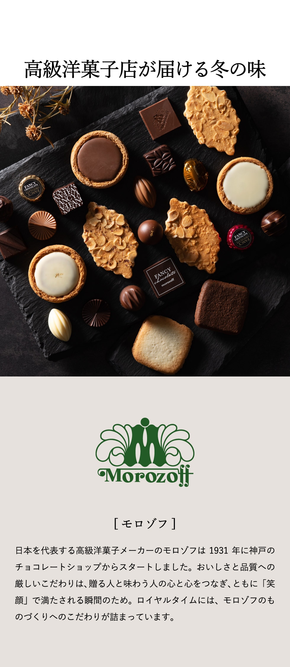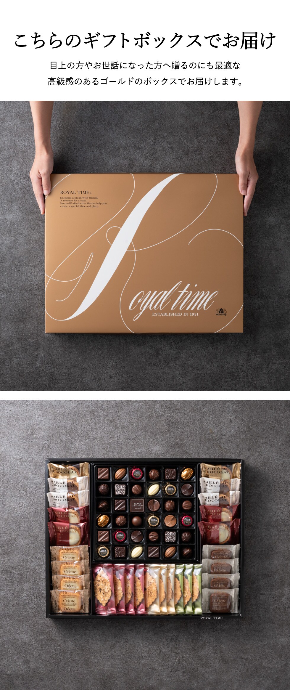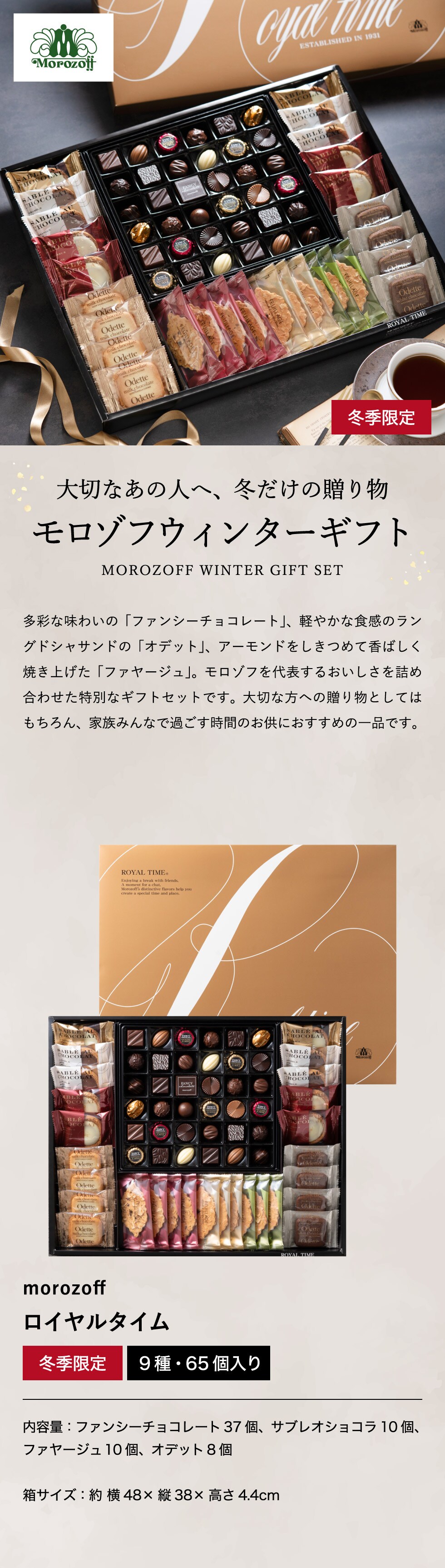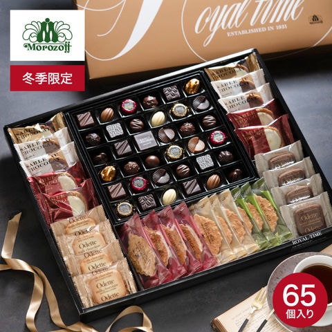 お菓子 ギフト 詰め合わせ モロゾフ ロイヤルタイム MO-1351 9種 65個 / 冬季限定 スイーツ 焼き菓子 ファヤージュ チョコレート 内祝い 出産内祝い 結婚内祝い お返し 出産祝い 結婚祝い 詰合せ ギフトセット 写真入り メッセージカード 個包装 お歳暮 誕生日プレゼント