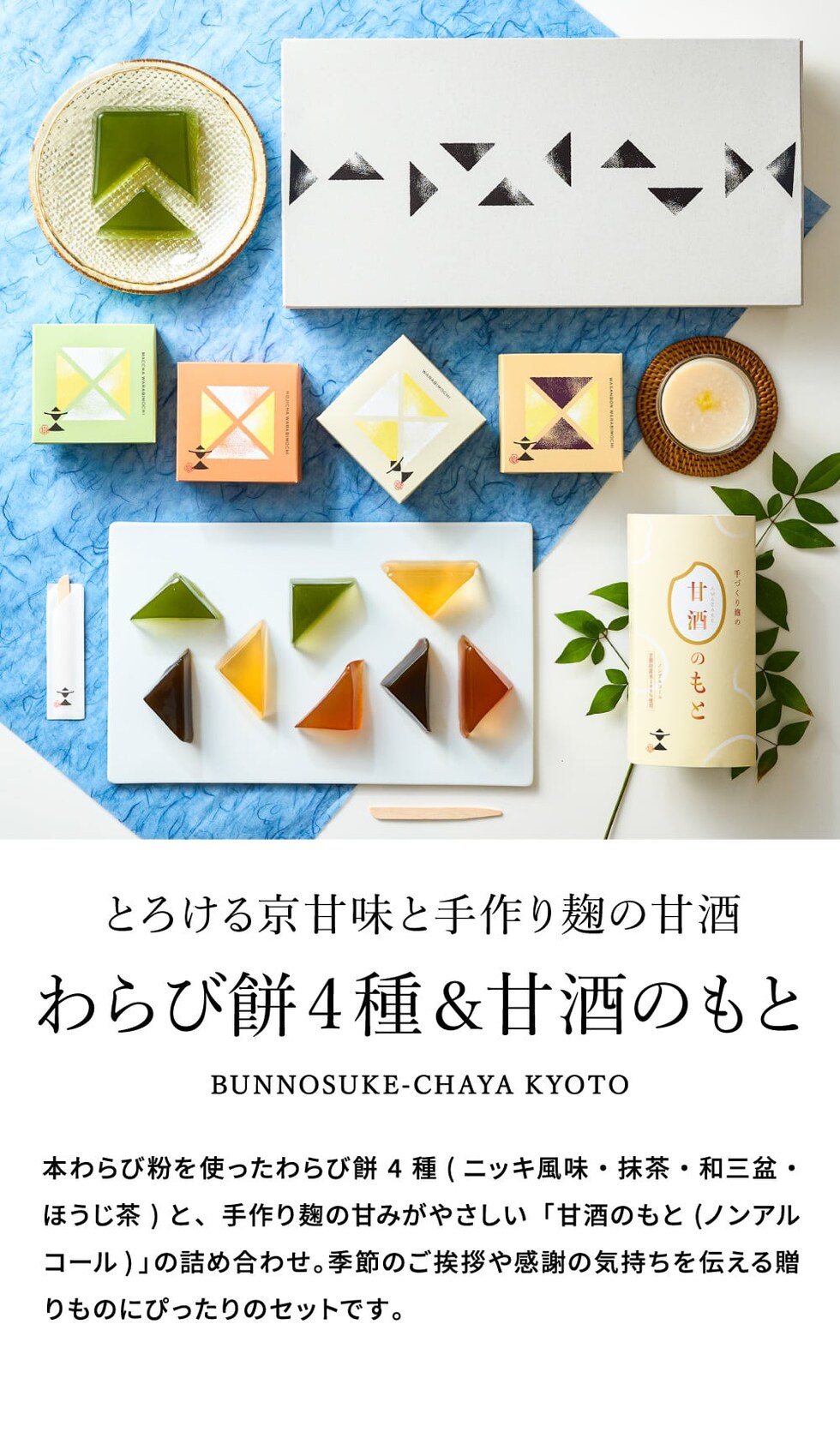和スイーツ 内祝い 京甘味 文の助茶屋 わらび餅&甘酒のもと 6個詰合せ / わらび餅 甘酒 和菓子 わらびもち 出産内祝い 結婚内祝い 写真入り メッセージカード無料 個包装 常温 香典返し お供え gws