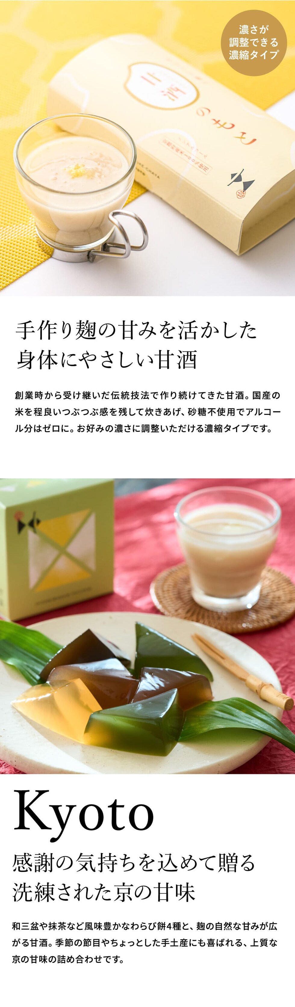 ●内容量:116g(わらび餅111g、きなこ5g)×4個、甘酒のもと180g×2個