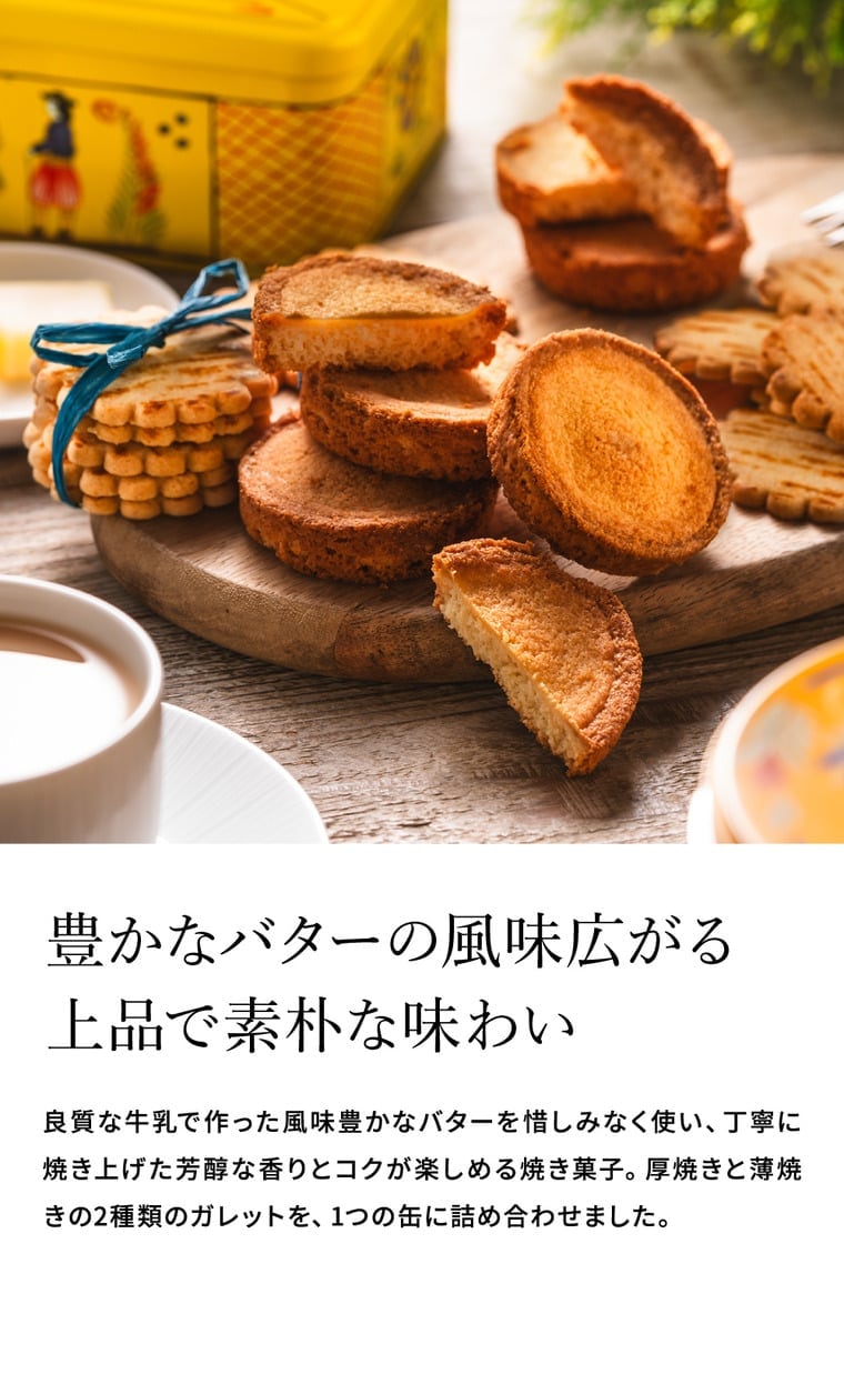 ●原材料:【厚焼】バター、砂糖、小麦粉、卵黄(卵を含む)、食塩/膨張剤【薄焼】小麦粉、砂糖、バター、食塩、鶏卵、酵母、ホエイ加工品