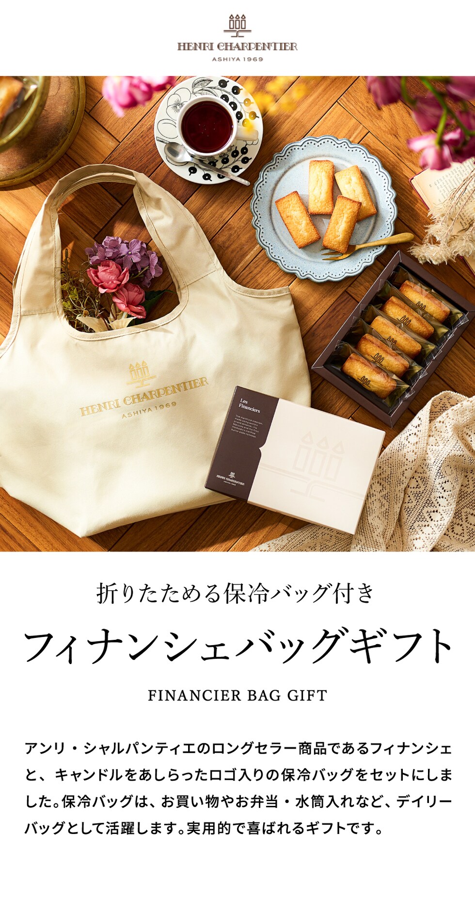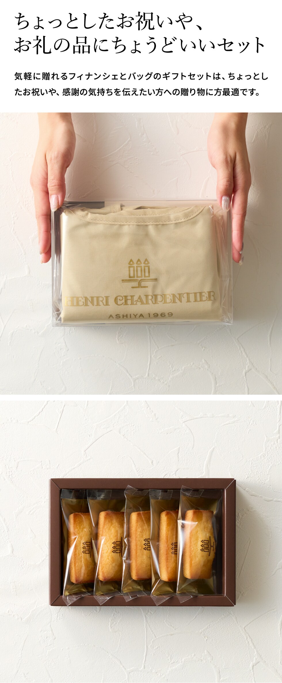 送料無料 アンリ・シャルパンティエ フィナンシェ 5個入 折りたたみ保冷バッグ付きギフトセット / お菓子 スイーツ 個包装 手土産 洋菓子 詰め合わせ ご挨拶ギフト 内祝い 結婚内祝い 出産内祝い 写真入り メッセージカード無料 贈答品 香典返し gws 入学内祝い お返し 母の日 2026