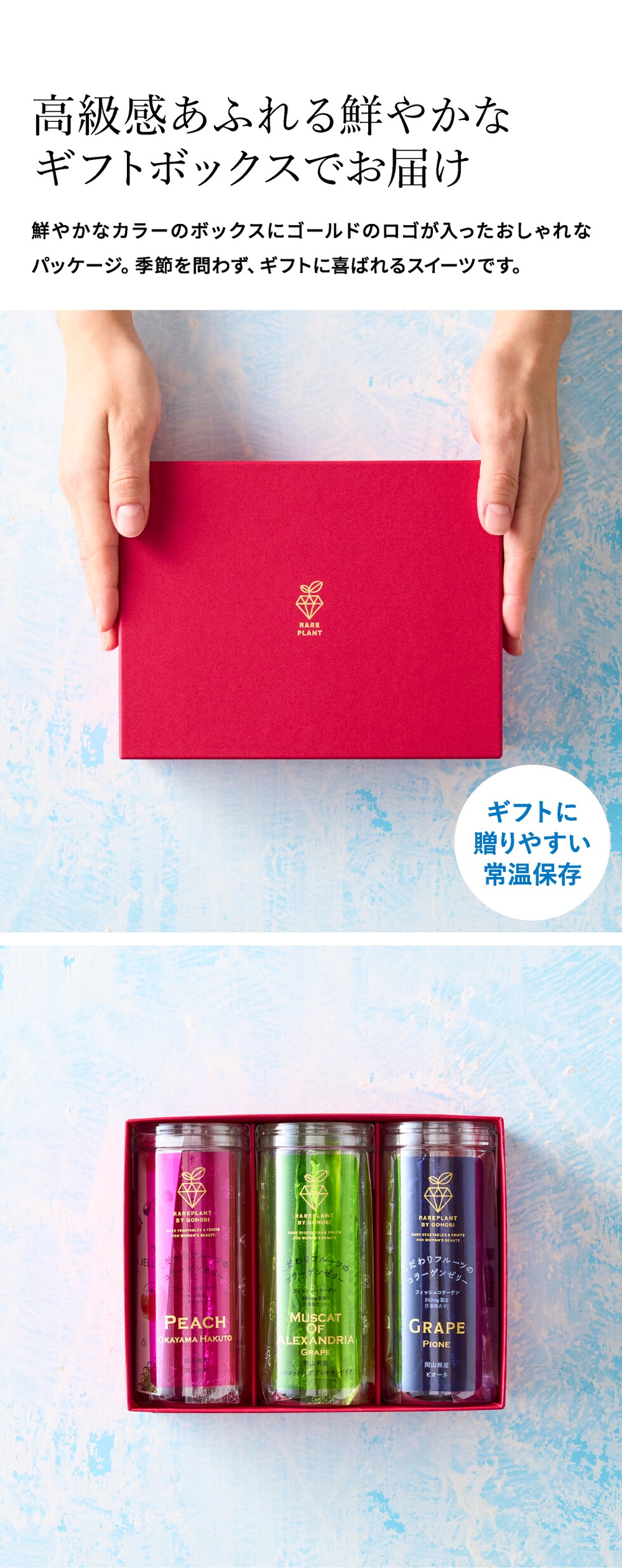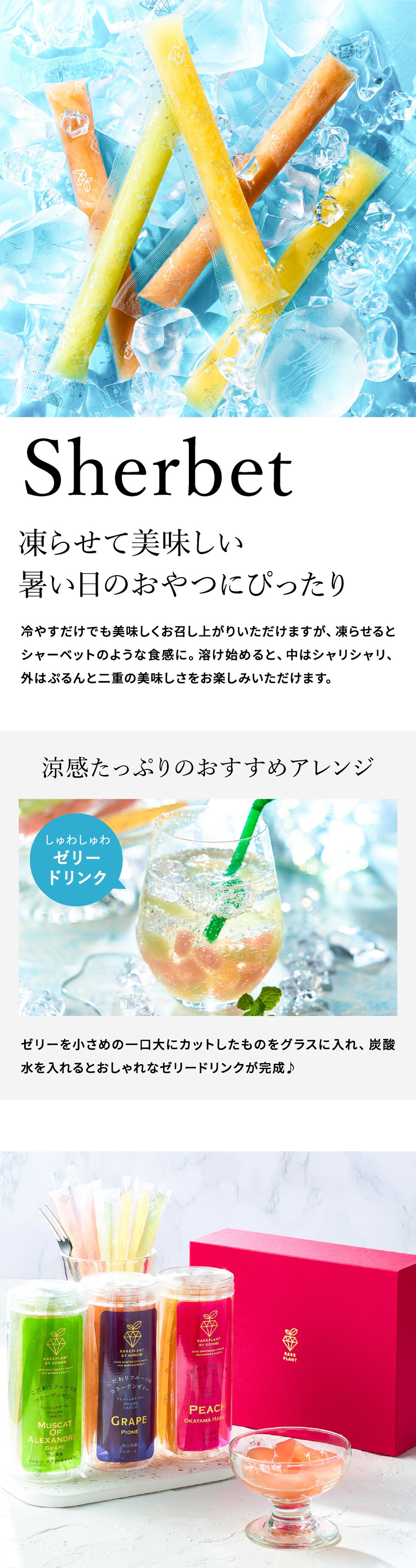 ●岡山県産ピオーネ:ブドウ糖果糖液糖(国内製造)、ぶどうピューレ、砂糖、フィッシュコラーゲンペプチド、こんにゃく粉/ゲル化剤(増粘多糖類)、ソルビット、酸味料、香料、赤キャベツ色素、(一部にゼラチンを含む)