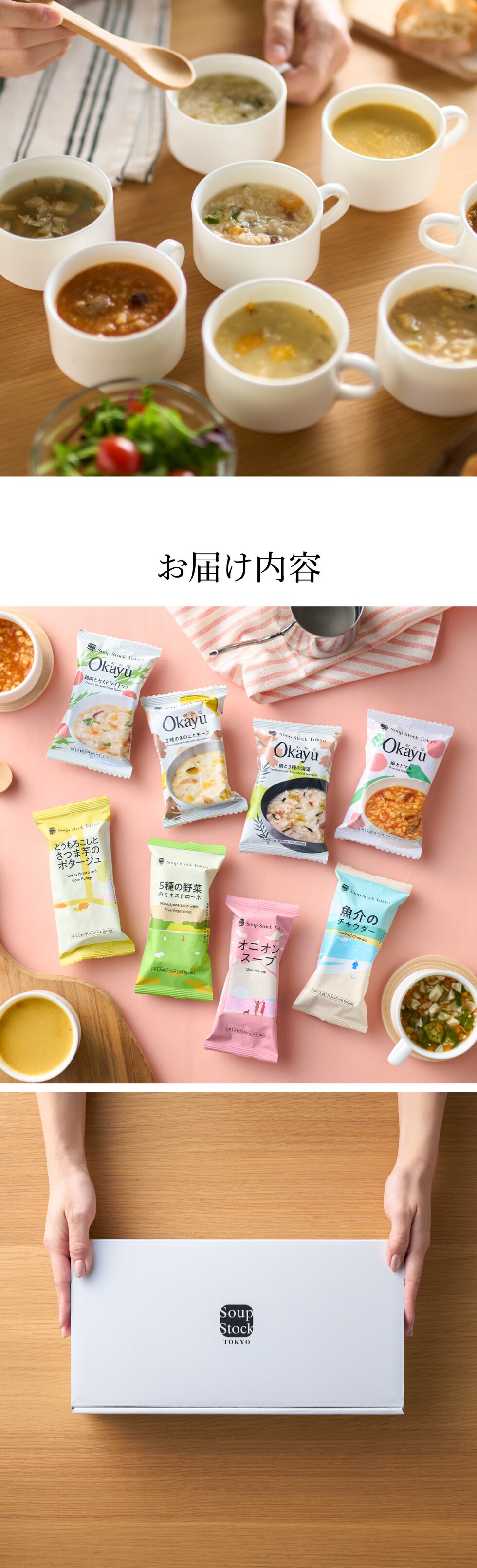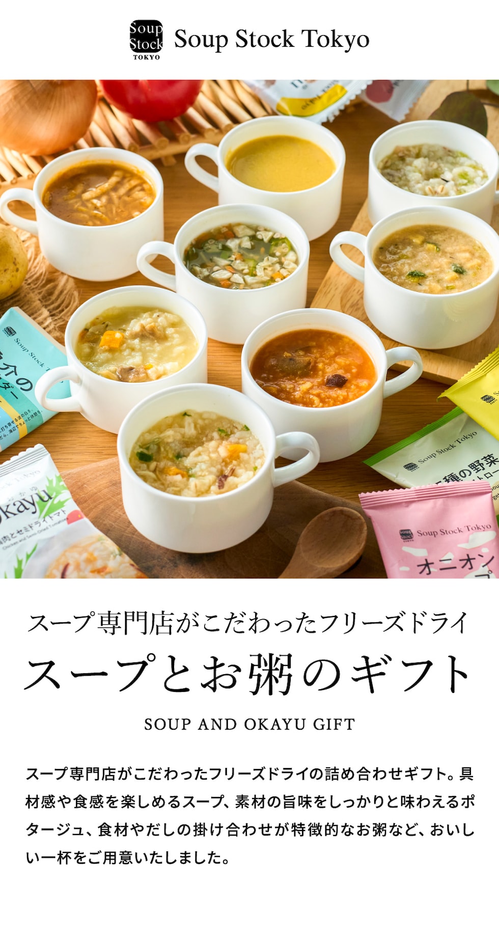 高島屋 法人事業部 セレクト スープストックトーキョー スープとOkayuの8種セット8個入 / 高島屋 ギフトセット Soup Stock Tokyo スープ おかゆ フリーズドライ 個包装 手土産 引越し 挨拶 出産 結婚 お返し贈答品 写真入り メッセージカード JGS お歳暮