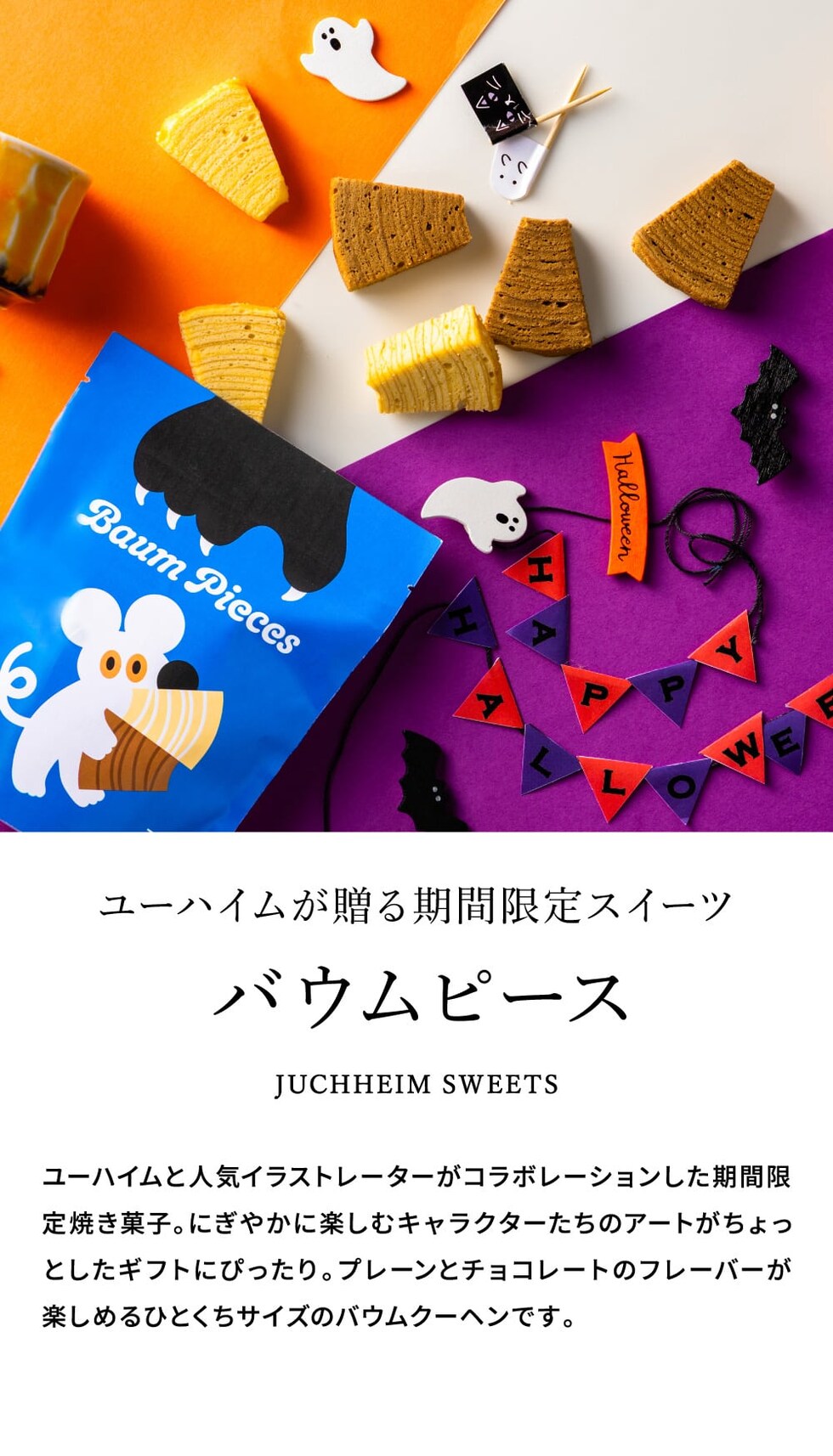 ハロウィン お菓子 ユーハイム HW.バウムピース(ミックス)バウムクーヘン プチギフト 洋菓子 内祝い 出産内祝い 結婚内祝い お祝い お返し 内祝い 返礼品 引出物 結婚引出物 記念品 食べ物 贈答品 プレゼント JGS 賞味期限2025年12月1日