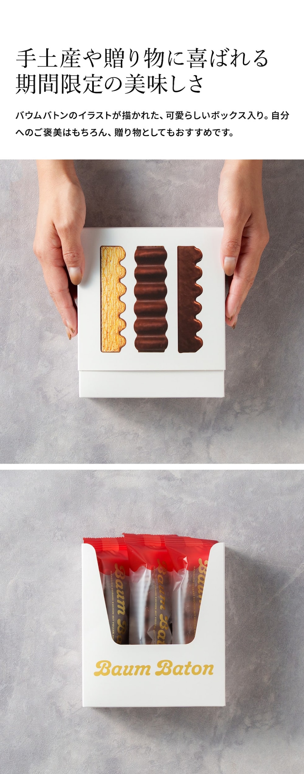 お歳暮 冬ギフト ユーハイム バウムバトン09 3個入 内祝い 洋菓子 焼き菓子 個包装 プレゼント ブランド 手土産 引越し 挨拶 出産 結婚 写真入り メッセージカード 誕生日 gws 食べ物 七五三内祝い ギフト