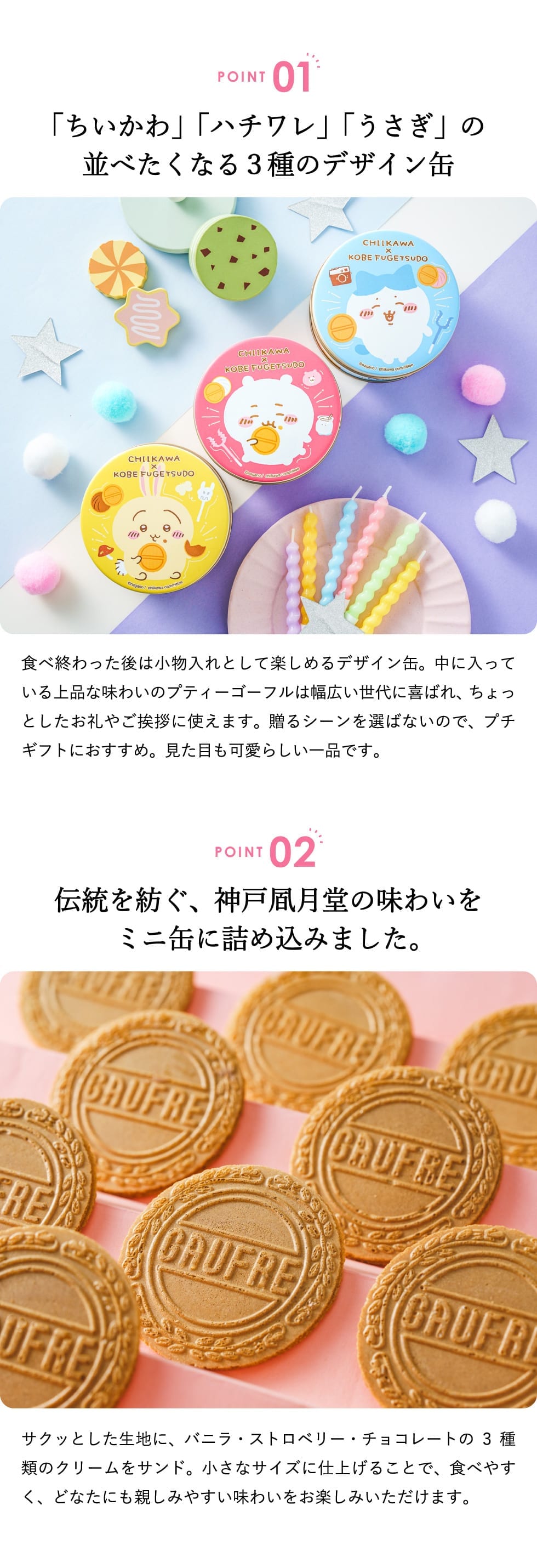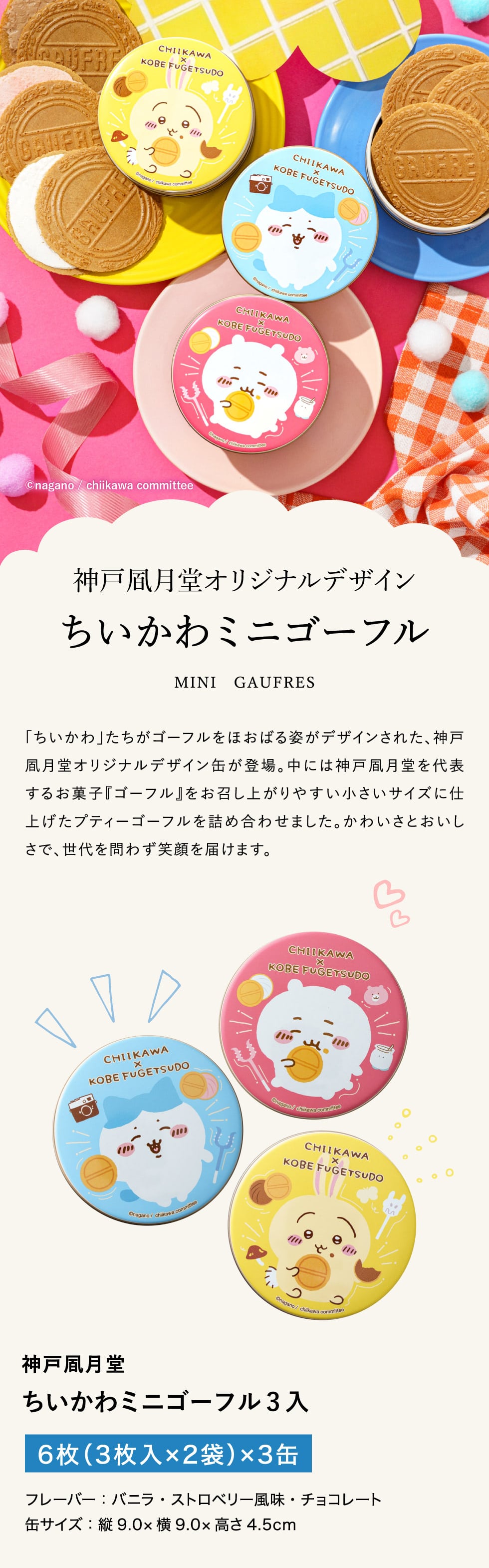 お歳暮 冬ギフト 神戸風月堂 ちいかわ ミニゴーフル 3缶入 / お菓子 スイーツ 手土産 かわいい 内祝い 結婚内祝い 出産 お返し 写真入り メッセージカード JGS 七五三内祝い ギフト