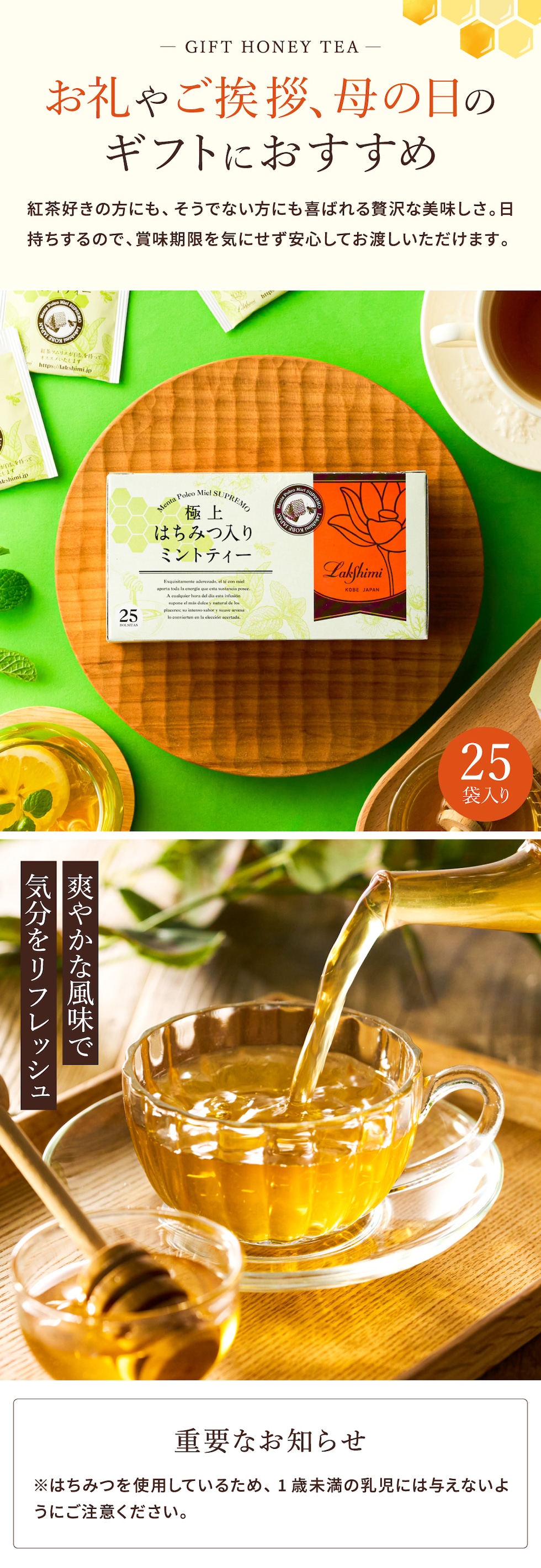母の日 はちみつ紅茶 ギフト ラクシュミー 極上はちみつ入りミントティー25袋入り Lakshimi 紅茶 蜂蜜 ハニー ラクシュミーはちみつ紅茶 ティーパック 内祝い 出産 結婚 詰合せ 贈答品 JGS プレゼント 女性 お返し 入学内祝い 母の日ギフト2026