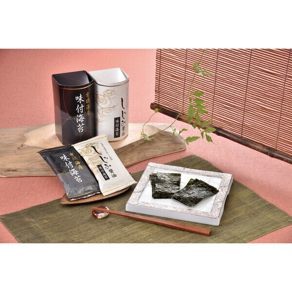 風味豊かな味付海苔と宍道湖産大和しじみを使用した醤油を使った味付海苔を詰合せました。食卓でのご飯のお供やお弁当にも便利です。