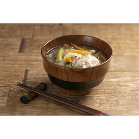 さび漆(水で練った砥の粉に生漆を混ぜたもの)でヘアラインを描き刷毛目を表現し、更に漆で研ぎ塗を重ねて曙風に仕上げました。シンプルで落ち着いた椀は色々なシーンで大活躍をしてくれます。木製のお椀で重厚感があります。