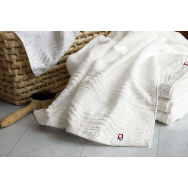 お肌になじみ、水分をしっかり吸収してくれるのでとても使いやすく贈り物に最適です。金糸・銀糸を使うことでさりげない豪華さと気品をそなえています。タオルの名産地「今治」から純白のタオルに気品をのせて。