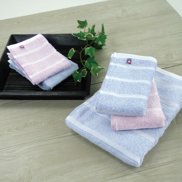 40単糸をパイルに使用し、ふんわりとしたやわらかなタオルになっています。細番手の独特な風合いが格別に肌に優しさを感じさせます。パイルの隙間から見える淡い色合いが、ぼかした色調を感じさせ、風合いと色合いに特別な表現を与えています。