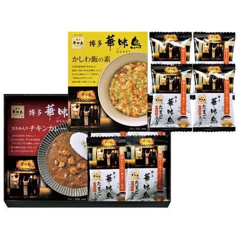 九州産銘柄鶏『華味鳥』の鶏肉と「鶏かさね炊き製法」により作られた鶏がらスープを使用し、『華味鳥』が作り上げた福岡の郷土料理かしわ飯と、「華味鳥」のささみを使用し、香辛料の絶妙なバランスにトマトの酸味と甘みがうまく絡み、風味良く優しい味わいに仕上げたささみ入りチキンカレーと、かつお、昆布などをベースに華味鳥水たきスープを配合し、ふんわりとしたたまごを混ぜ合わせて、ほうれん草と人参を部材に彩り豊かに仕上げたたまごスープをセットにしました。