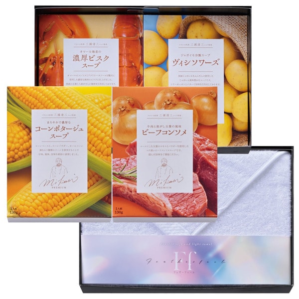 コンビネーションギフト 三國清三シェフ監修スープ&今治タオルセット MM28-FT1 / 結婚 出産 内祝い お祝い 出産内祝い お返し お祝い返し 香典返し 引っ越し ご挨拶 快気祝い 入学 就職 退職 贈答品 gws ギフト