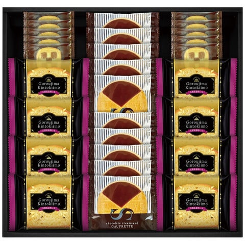 【五郎島金時いもケーキ】砂糖(国内製造)、小麦粉、全卵、植物油脂、加藤さつまいもペースト(さつまいも(石川県産(五郎島金時いも100%))、砂糖)、ブドウ糖、黒ごま、食塩/トレハロース、加工澱粉、ベーキングパウダー、乳化剤、増粘剤(キサンタンガム)、香料、(一部に卵・小麦・大豆・ごまを含む) 【ゴーフレット(チョコ)】小麦粉(国内製造)、ショートニング、砂糖、液全卵、脱脂粉乳、準チョコレート、ココアパウダー、澱粉、製菓用油脂(還元水飴、植物油脂)/膨張剤、乳化剤、酸化防止剤(V.E)、香料、着色料(カロテン)、(一部に卵・乳成分・小麦・大豆を含む) 【チェスクッキー】小麦粉(小麦(アメリカ))、マーガリン、砂糖、液全卵、ココアパウダー、食塩 /香料、酸味料、カロテン色素、(一部に卵・乳成分・小麦・大豆を含む)