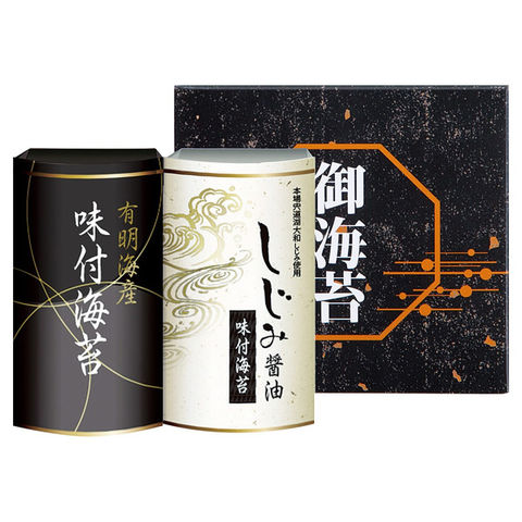 風味豊かな味付海苔と宍道湖産大和しじみを使用した醤油を使った味付海苔を詰合せました。食卓でのご飯のお供やお弁当にも便利です。