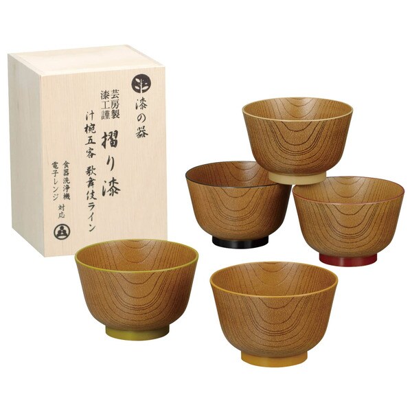 漆の器 摺り漆 汁椀5客 歌舞伎ライン 17087 / 結婚 出産 内祝い お祝い 出産内祝い お返し お祝い返し 香典返し 引っ越し ご挨拶 快気祝い 入学 就職 退職 贈答品 gws ギフト