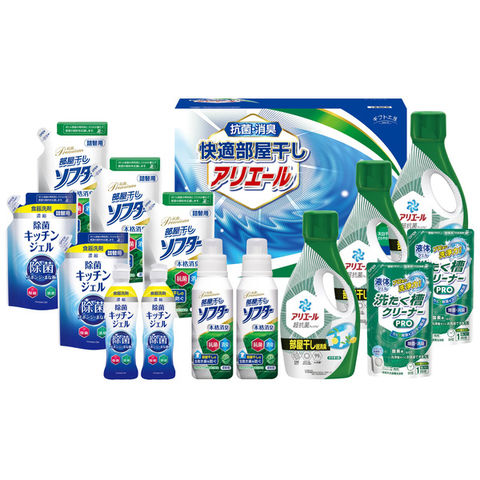P&Gアリエールジェル部屋干し超消臭700g×3、除菌キッチンジェル200ml×2、除菌キッチンジェル(詰替)160ml×2、抗菌部屋干しソフター300g×2、抗菌部屋干しソフター(詰替)300g×3、液体洗たく槽クリーナーPRO200g×2