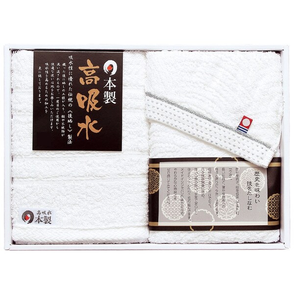 日本のタオルの2大名産地である高吸水加工を施した泉州タオルと、心地良い純白の今治タオルをセットしたギフトです。