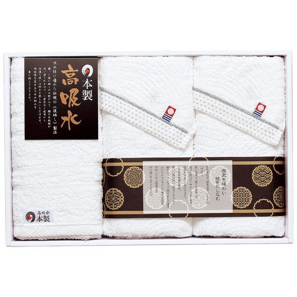 日本のタオルの2大名産地である高吸水加工を施した泉州タオルと、心地良い純白の今治タオルをセットしたギフトです。