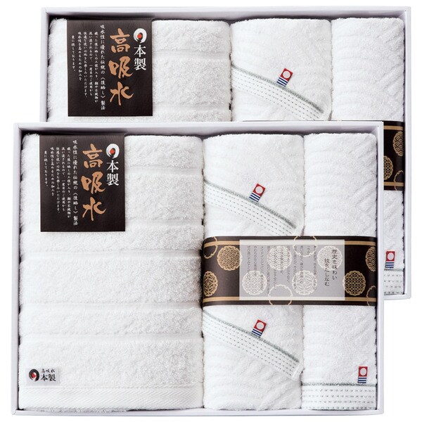 日本のタオルの2大名産地である高吸水加工を施した泉州タオルと、心地良い純白の今治タオルをセットしたギフトです。