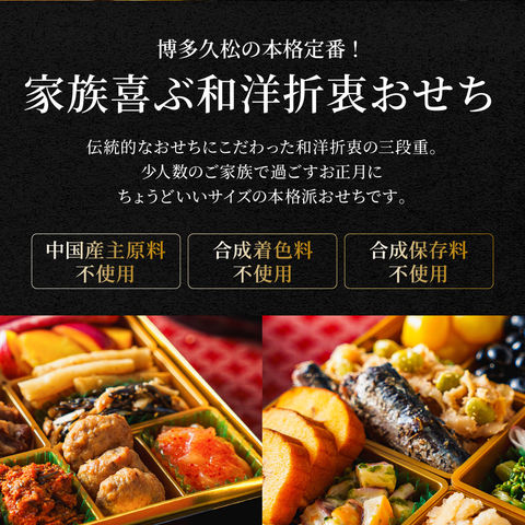おせち 2026 博多久松 本格定番おせち「舞鶴」 3段重(約2人前~3人前 36品)(冷凍便)(メーカー直送) / 迎春 本格 おせち料理 少人数 年 予約 正月 お節 御節 御節料理 福袋 送料無料 / お届け予定日:12/29