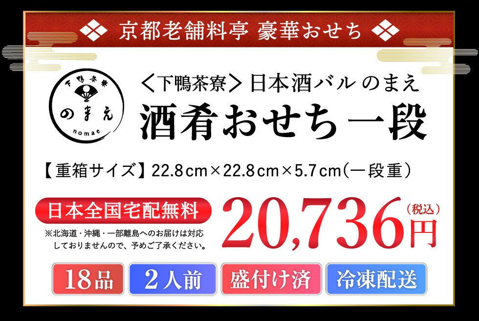 おせち 料理 2024年 送料無料 下鴨茶寮 のまえ 酒肴おせち 一段(約2人前 20品)(お届け日12/30)メーカー直送 (クレジット等後払い以外はキャンセルとなります)冷凍便 / 迎春 本格 おせち 正月 お節 福袋