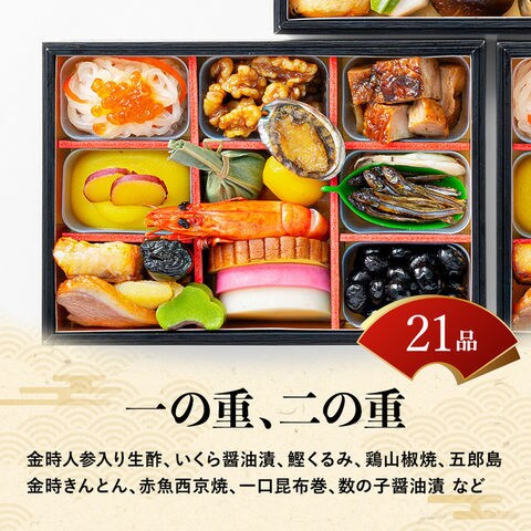 おせち 2026 加賀屋 和風おせちお煮〆 37品 3段重(2人前 37品)(お届け日12/29)メーカー直送 冷凍便 送料無料 / 和風 迎春 本格 おせち料理 2026年 予約 正月 お節 御節 御節料理 福袋