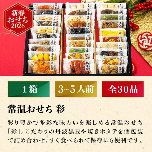 おせち 2026 常温おせち 彩 (約3人前~5人前 30品)(お届け日12/25人前~28頃)メーカー直送 常温便 送料無料 / 和風 迎春 本格 おせち料理 2026年 予約 正月 お節 御節 御節料理 福袋