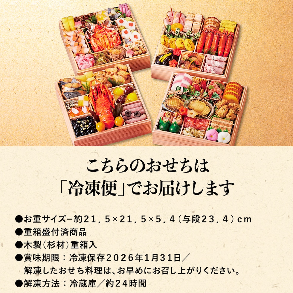 ●賞味期限:冷凍保存2026年1月31日/解凍したおせち料理は、お早めにお召し上がりください。