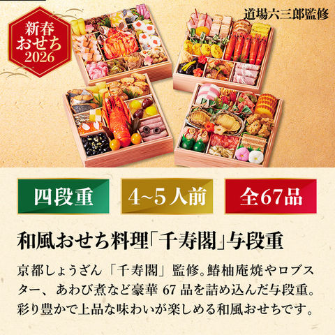 おせち 2026 京都しょうざん和風おせち料理「千寿閣」与段重 (約4人前~5人前 67品)(お届け日12/29)メーカー直送 冷凍便 送料無料 / 四段重 和風 迎春 本格 おせち料理 2026年 予約 正月 お節 御節 御節料理 福袋