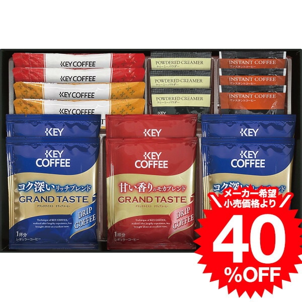 ●商品内容:キーコーヒードリップ(リッチブレンド1杯分×4・モカブレンド1杯分×2)、キーコーヒースティック(カフェオレ7g×2・カフェモカ7.8g×2)、キーコーヒーインスタントコーヒー2g×3、キーコーヒークリーミーパウダー2.5g×3