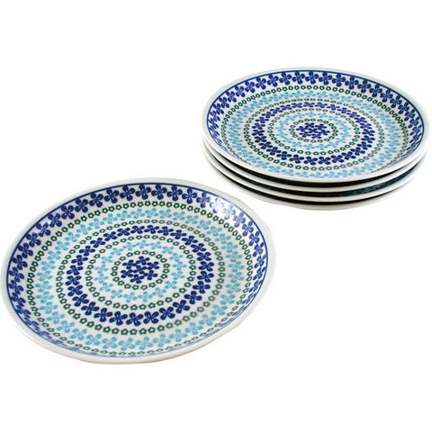 花冠、花飾りを想わせる、大小の小花がリズミカルに並んだかわいい食器セットです。ブルーとグリーンの落ち着いた色調だから、毎日のテーブルでいつまでも飽きずにお使いいただけます。
