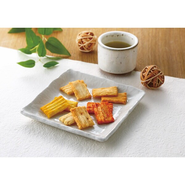 国産もち米を使用した野菜が入ったおかきを便利な個包装にしてバラエティ豊かに詰合せました。