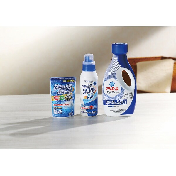 P&Gアリエールジェル720g・P&Gアリエールジェル(詰替用)405g・除菌キッチンジェル200ml・除菌キッチンジェル(詰替用)160ml・抗菌消臭ソフターEX350g・洗たく槽クリーナーEX100g×各1、抗菌消臭ソフターEX(詰替用)350g×2