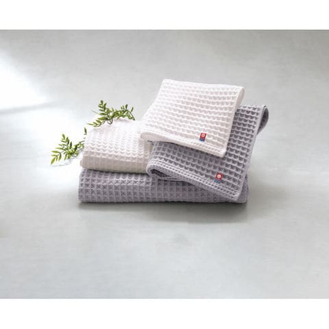 美しさと使い心地の良さを兼ね備えた、立体的な織柄の今治製タオルセット。「ワッフル織」と呼ばれるマス型のこの組織は、さらりとした肌触りと優れた吸水性が特長です。風合いと織目の美しさを損ねないよう、程よいバランスで設定した3種類の糸を使用。使っていくうちにボリュームが増して、ふんわりしていた感触が「ふっくら」に変わっていきます。使うたび、贅沢な気持ちにさせてくれるタオルです。