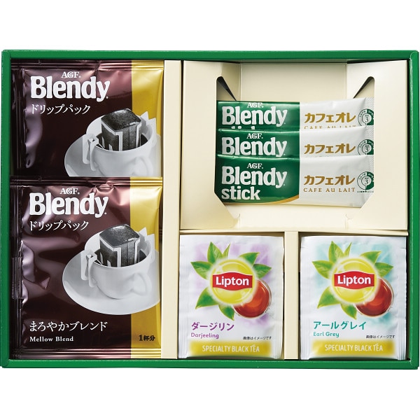 AGFブレンディドリップコーヒー×2、AGFブレンディスティックカフェオレ×3、リプトンティーバッグ(アールグレイ・ダージリン)×各1