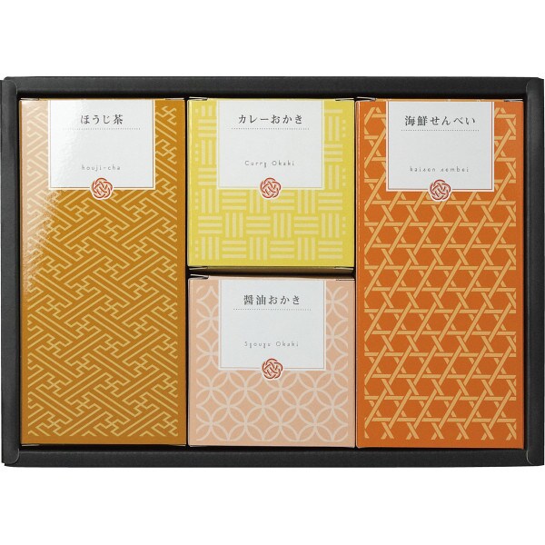 ほうじ茶60g×1、海鮮せんべい20g×1、たまり醤油おかき24g×1、カレーおかき24g×1