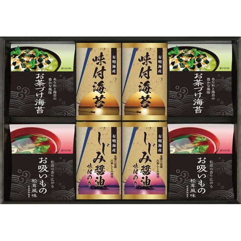 永谷園お茶づけ海苔(4.7g×5)・永谷園お吸いもの松茸風味(2.3g×6・粉末)・有明海産味付海苔(10切20枚)・しじみ醤油味付海苔(10切20枚)×各2