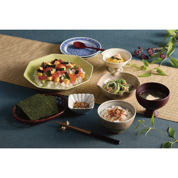 大森屋味付のり8切5枚×2、とろろ昆布1.5g×3、お吸い物2.5g×5